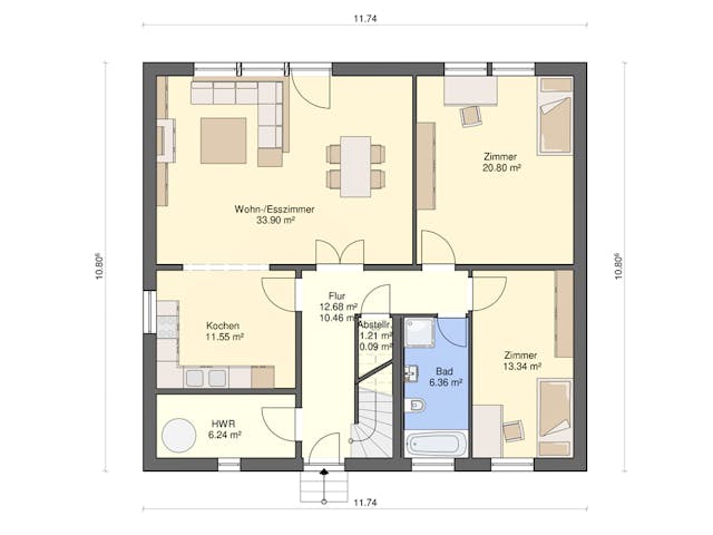 - Eingangsbereich mit Staufläche, Flur und Treppe: 15 qm
