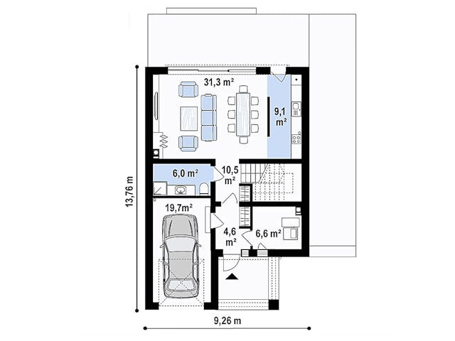 - Gemeinsame Basis: Eine erfolgreiche Konzeption Ihres Doppelhaus-Grundrisses erfordert selbstverständlich auch die gegenseitige Übereinkunft mit der anderen Wohnpartei, unter anderem die Einigung auf eine gemeinsam genutzte und damit ökonomische Heizungsanlage, zusammen verwendete Garagen oder Carports, ebenso wie die Entscheidung für oder gegen Kellerräume.