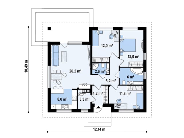 Einfamilienhaus-Grundriss 8x12 m als Bungalow