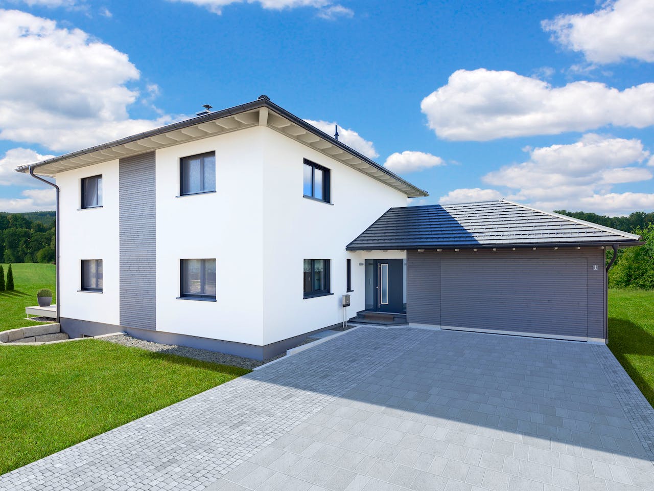 Das Zeltdach verleiht der Stadtvilla eine symmetrische, moderne Optik und sorgt im Obergeschoss für besonders hohe Decken ohne Dachschrägen. Zudem bietet die quadratische Dachform reichlich Fläche für eine Solarthermie-Anlage zur Warmwasserbereitung. Die Kombination aus effektiver Raumnutzung und ökologischer Energiegewinnung macht diese Architektur besonders intelligent und nachhaltig für moderne Familien.