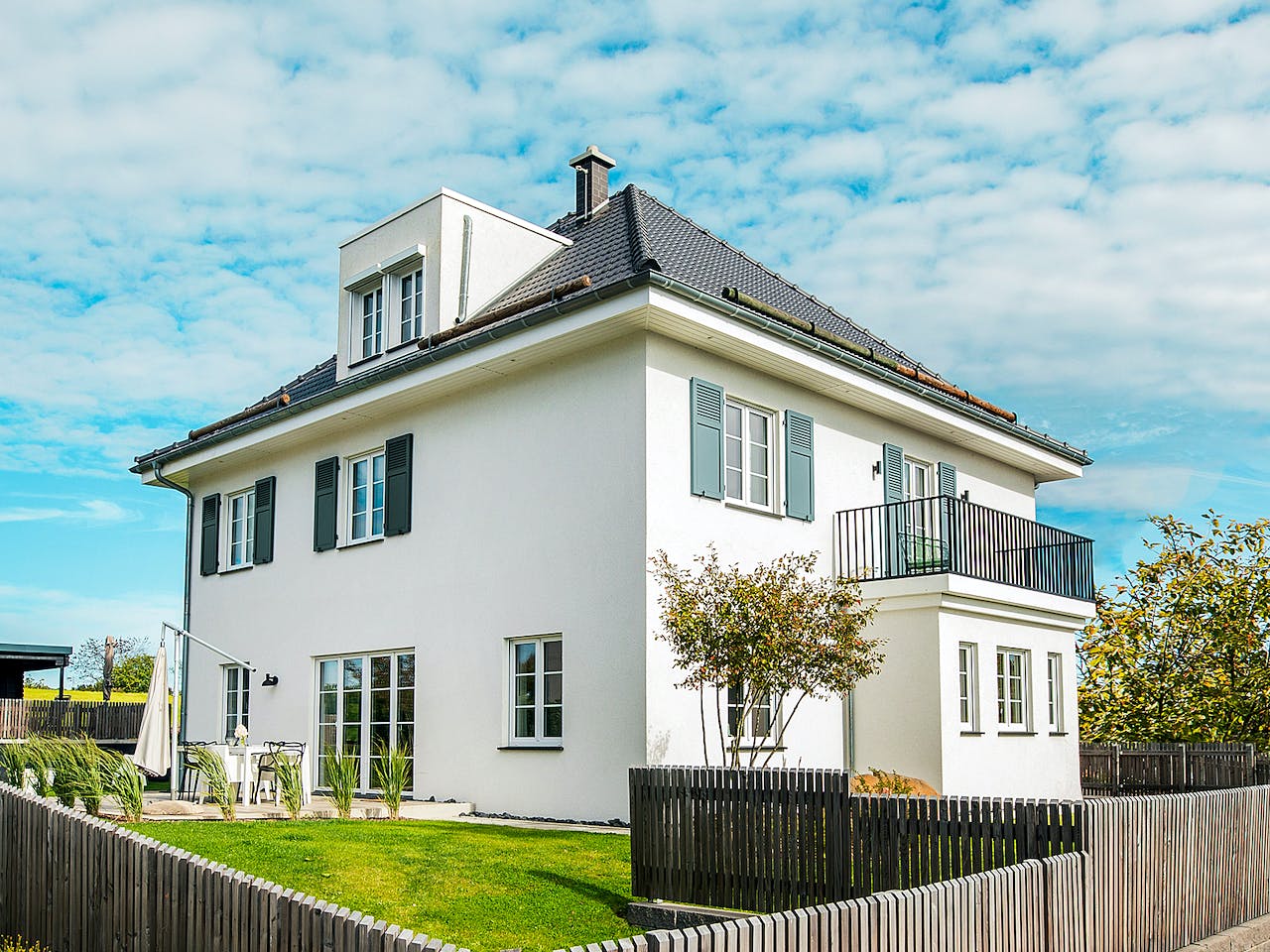 Das Haus Suro interpretiert die klassische Hamburger Kaffeemühle modern neu. Markant sind die quadratische Form, das steile Walmdach mit 42 Grad Neigung und der elegante Erker mit darüberliegendem Balkon. Diese Architektur bietet nicht nur eine zeitlose Ästhetik, sondern ermöglicht durch die Vollgeschosse auch eine optimale Raumausnutzung ohne störende Dachschrägen im Obergeschoss.