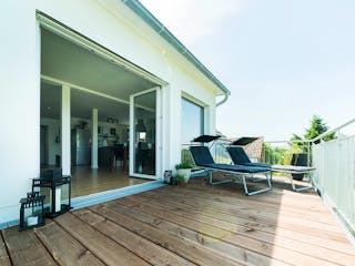 Ein Effizienzhaus 55 verbraucht im Vergleich zum Referenzhaus 100 45 % weniger Energie. Sie müssen für den Hausbau mit Mehrkosten von ~ 7,5 % rechnen, die sich aber mittelfristig auszahlen. Diese Effizienzklasse gilt heutzutage als Standard für alle neu gebauten Häuser.