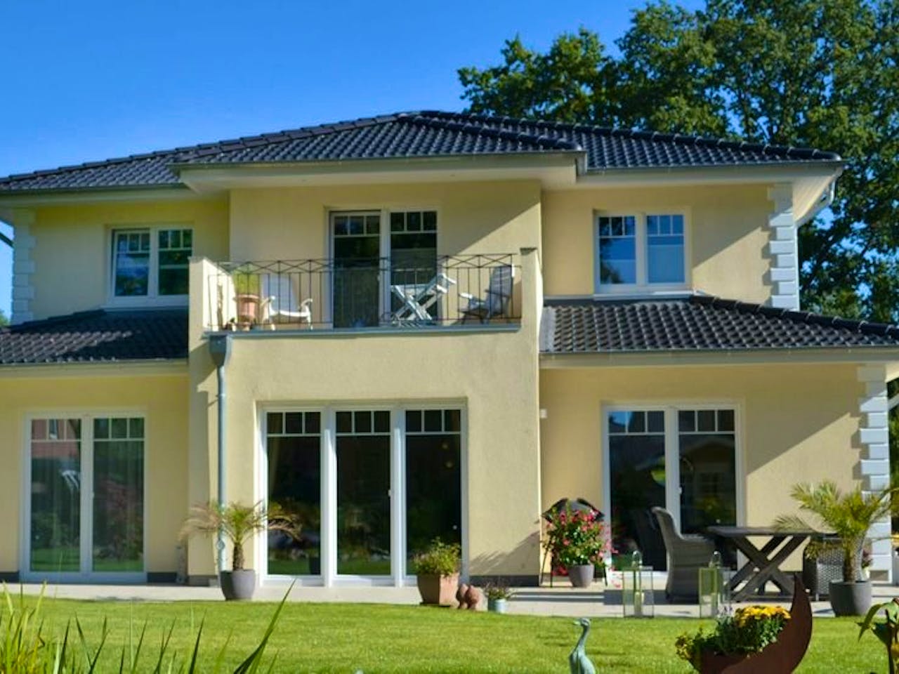 Das Haus Palermo besticht durch seinen mediterranen Baustil, der Urlaubsflair direkt zu Ihnen bringt. Charakteristisch sind das elegante Zeltdach und die Verwendung warmer Fassadenfarben, die an die Toskana erinnern. Dank der massiven Bauweise Stein auf Stein bietet es zudem einen exzellenten Schallschutz und ein angenehmes Raumklima zu jeder Jahreszeit.