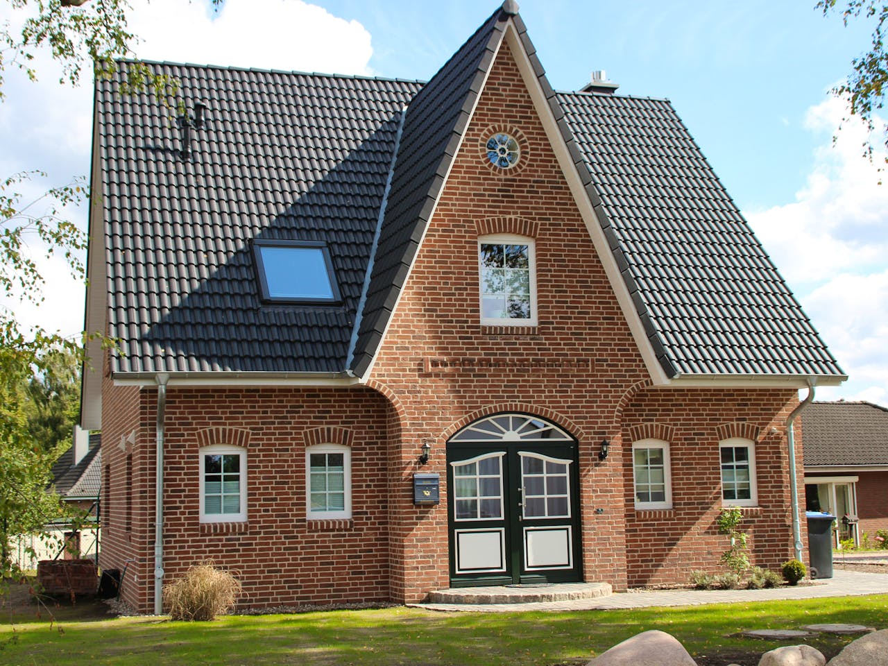 Das Haus Blickstedt besticht durch seinen nordischen Charme im Stil eines klassischen Friesenhauses. Markant sind die besonders hohen, spitzen Giebel und das Satteldach mit 45 Grad Neigung. Sprossenfenster und eine typische Friesentür runden die traditionelle Optik ab. Wir schätzen an diesem Entwurf besonders die Kombination aus massiver Bauweise und zeitloser, regionaler Architektur für ein gemütliches Familienleben.