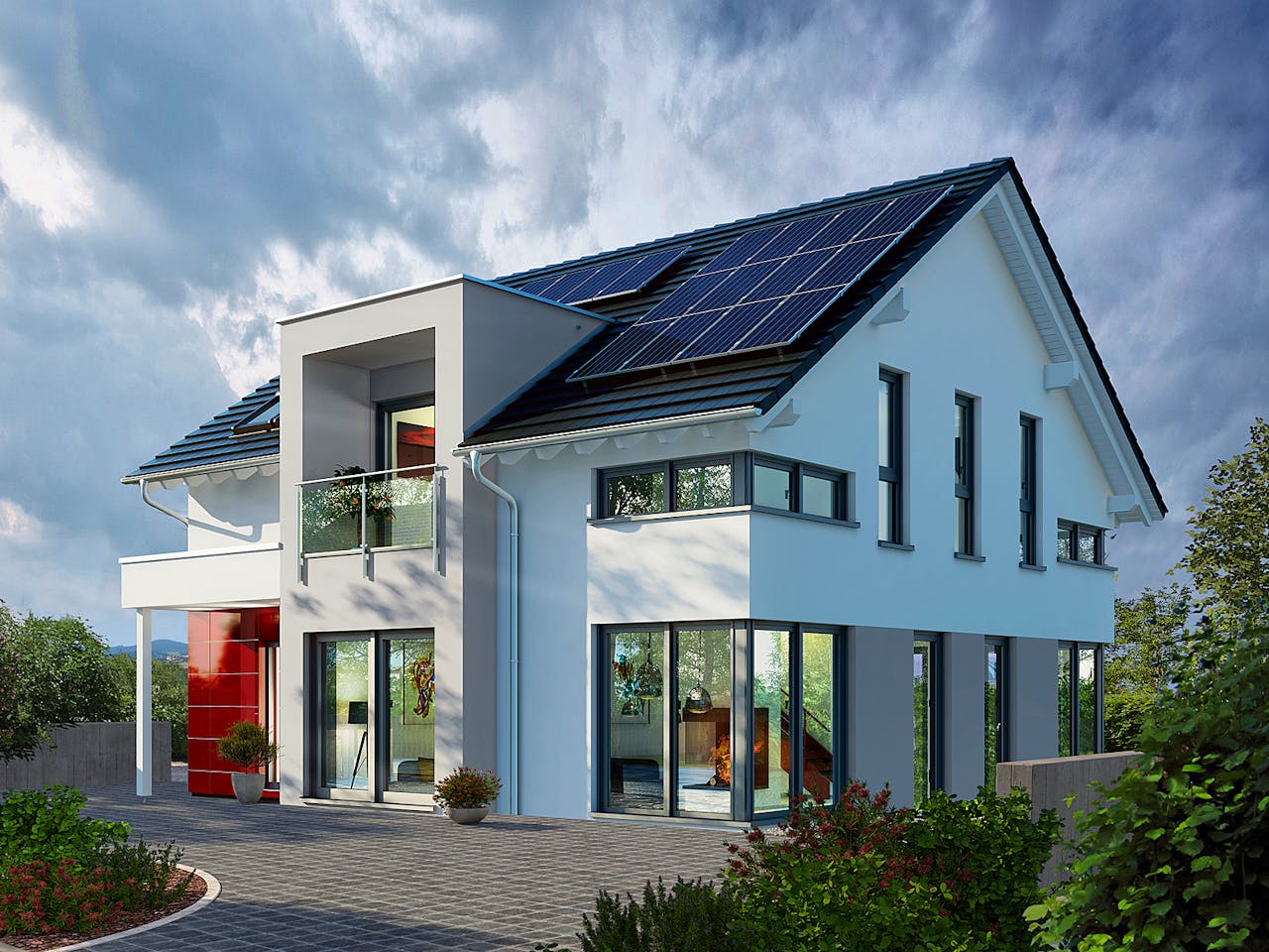 Unter dem Satteldachklassiker steckt jede Menge Liebe zum Detail. Schon die Fassade spricht für sich: das Zwerchhaus, die Farbakzente und der gelungene Materialmix aus Putz und Glasverkleidung verkörpern Architektur vom Feinsten. Doch auch im Innenbereich bleiben keine Wünsche offen.