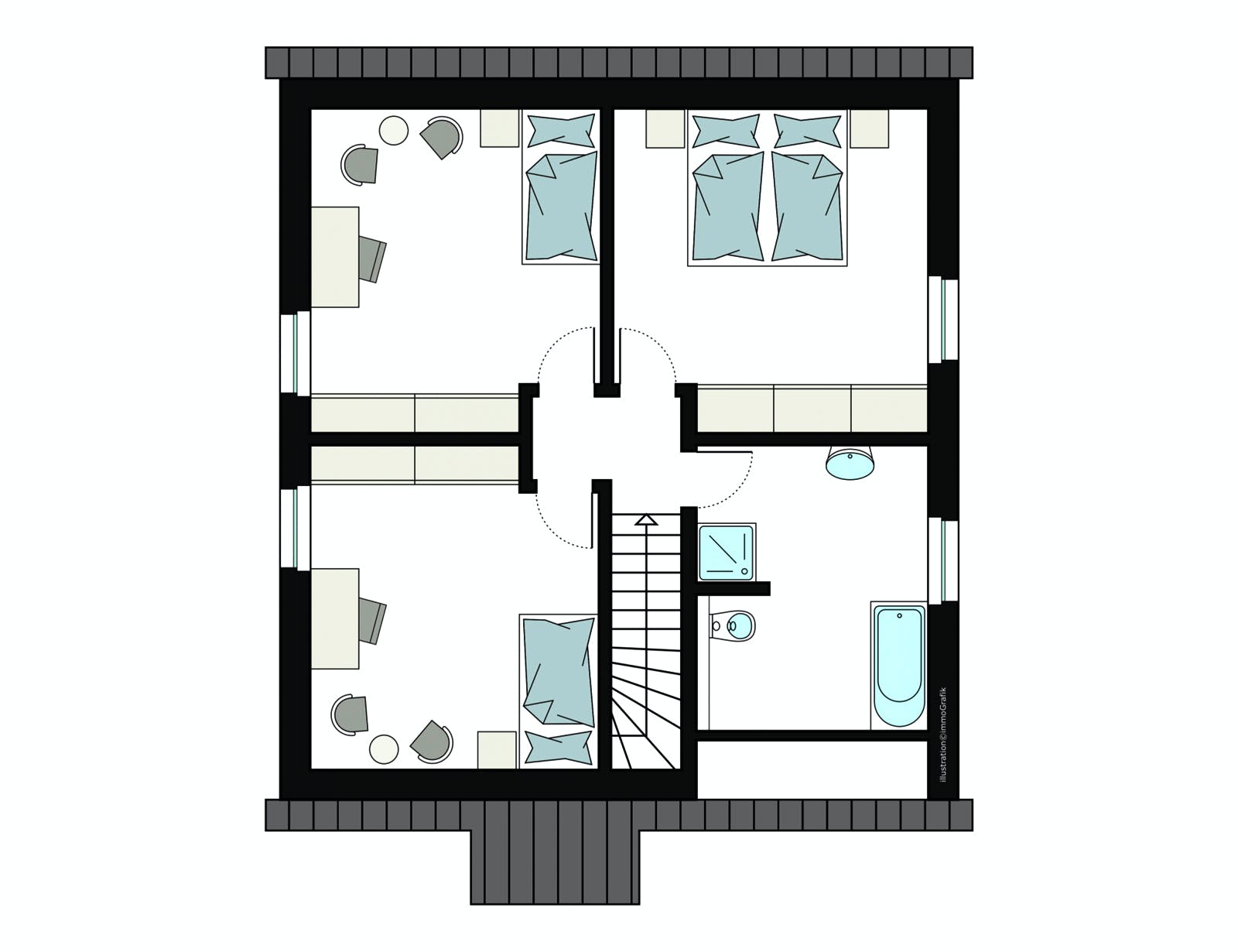 Passen Sie den Grundriss an Ihre persönlichen Bedürfnisse an und besprechen Sie Ihren individuellen Plan mit einem Bauberater des Anbieters.
