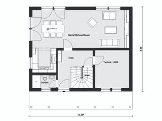 Passen Sie den Grundriss an Ihre persönlichen Bedürfnisse an und besprechen Sie Ihren individuellen Plan mit einem Bauberater des Anbieters.