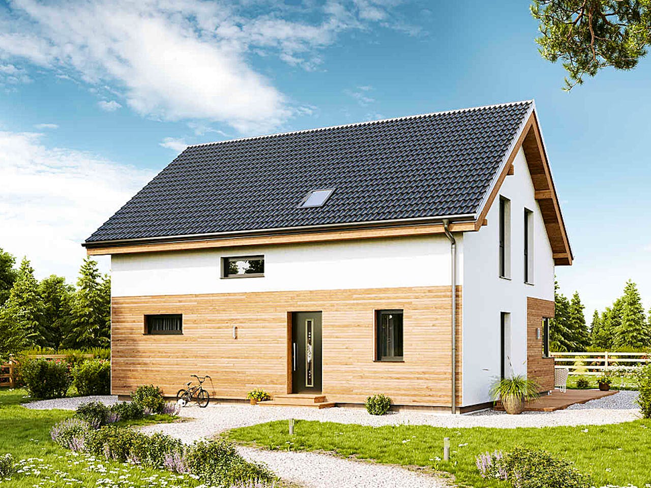 Das Haus wird serienmäßig als Effizienzhaus 55 errichtet. Vario-Haus legt großen Wert auf Nachhaltigkeit und bietet Ihnen zudem die Möglichkeit, auf den KfW 40 Plus-Standard aufzurüsten. Durch regenerative Energiequellen und eine ökologische Bauweise investieren Sie in ein zukunftssicheres Eigenheim. Wir unterstützen Sie dabei, die passenden energetischen Upgrades für Ihre persönlichen Förderziele zu identifizieren.