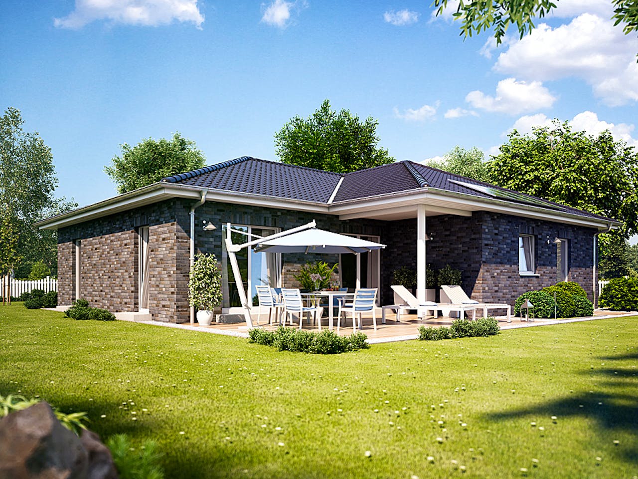 Schauen Sie sich diesen modernen Bungalow mit gut 140 qm Platz für Ihre Wohnträume genauer an! Hochwertige Ausstattung, modernes Design und immer noch ausreichend Platz für Ihre individuelle Gestaltung. Wir schlagen Ihnen 4 Grundrisse vor, aber wir sind ganz Ohr, Ihre Wünsche in die Tat umzusetzen. Ganz zu Schweigen von Ihren Vorstellung zu Fassade, Dach und Fenstern. Wir verwenden nur erstklassige Materialien unserer Markenpartner. Unser Bauherren-Service bietet Ihnen zudem eine entspannte Bauphase. Gehen Sie in Ruhe Fußböden, Küche und Farben auswählen, während wir den Bau Ihres Hauses betreuen.