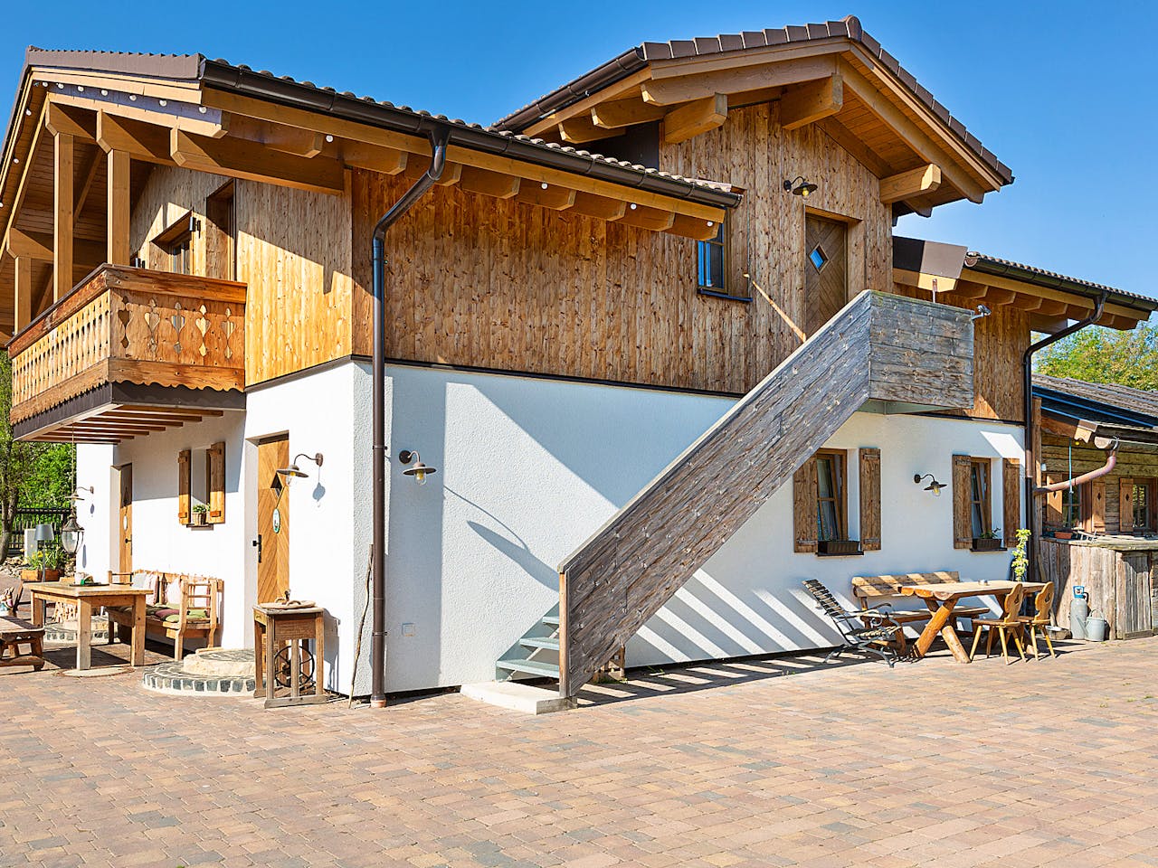 Das Landhaus präsentiert sich im alpenländischen Stil mit einer authentischen Putz-Altholzfassade, das, genau wie das Stallgebäude (ebenfalls von Wolf System) Gemütlichkeit und Natürlichkeit ausstrahlt. Dabei steht es nicht etwa im süddeutschen Raum, sondern im Rhein-Maingebiet.