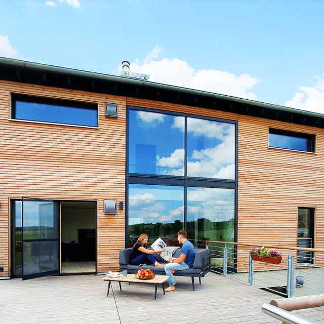- Panoramafenster können Sie für eine optimale Belichtung in höheren Geschossen einbauen.