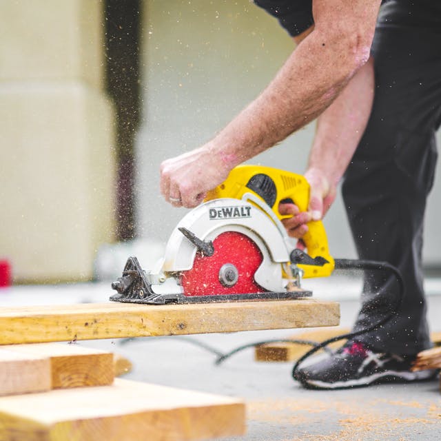 - Kreissäge auf festem und ebenem Untergrund aufstellen